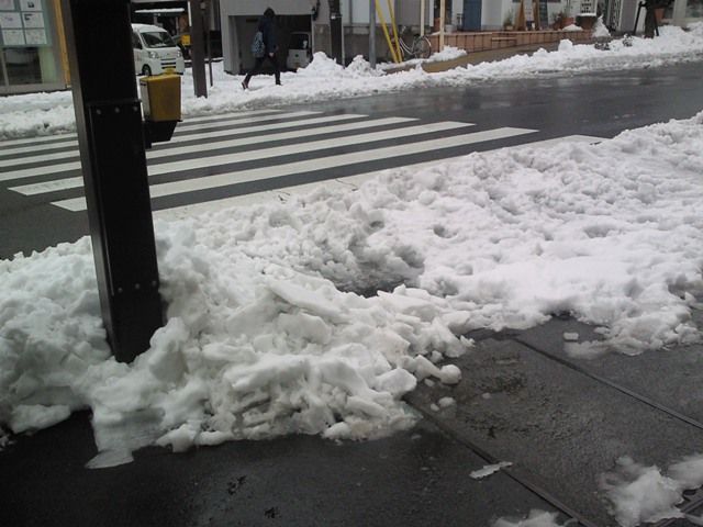 雪かきしたところはすぐに溶けるのですが、積み上がった場所は